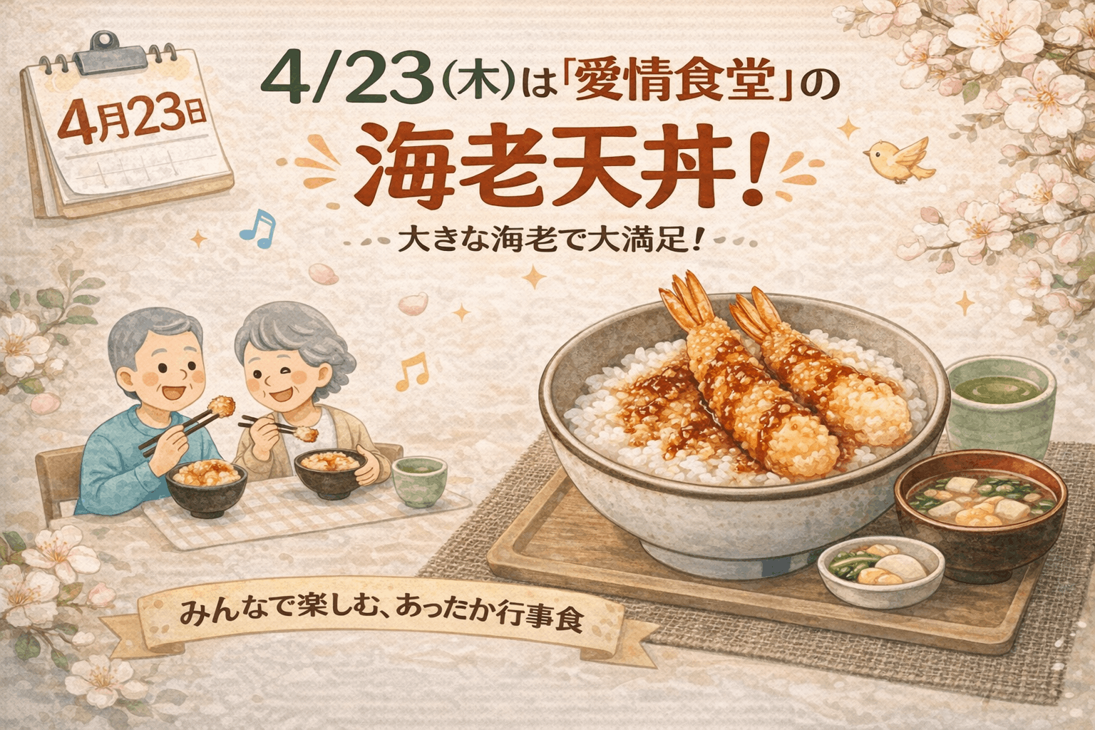 新しい環境での生活が始まり、少しずつ緊張が解けてくる4月の後半。そんな時期に、利用者様の心と体へ活力を届けるのが「行事食」の役割です。今週23日(木)には、皆様お待ちかねの特別メニューが登場します。